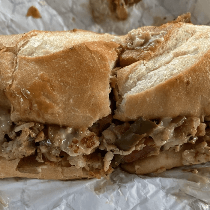A 3 oz portion of steak or chicken with melted cheese, grilled and served on a bed of lettuce and spring mix with your choice of onions, tomatoes and hot or sweet peppers
