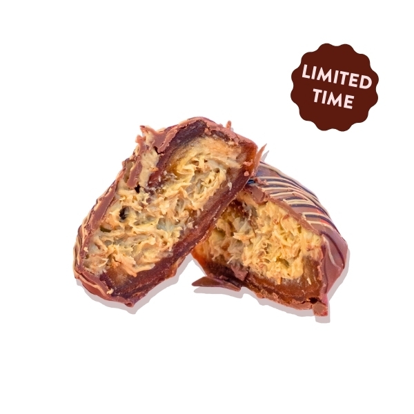 Soft, premium dates filled with crispy knafeh and rich pistachio cream, dipped in silky milk chocolate and finished with a pistachio and chocolate drizzle. A decadent Middle Eastern–inspired indulgence.