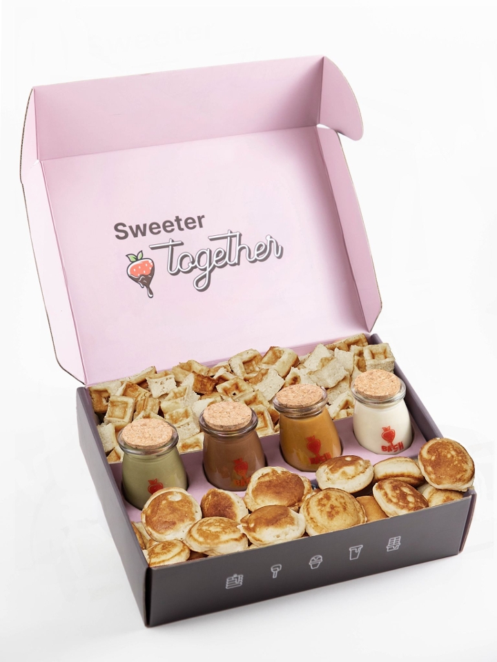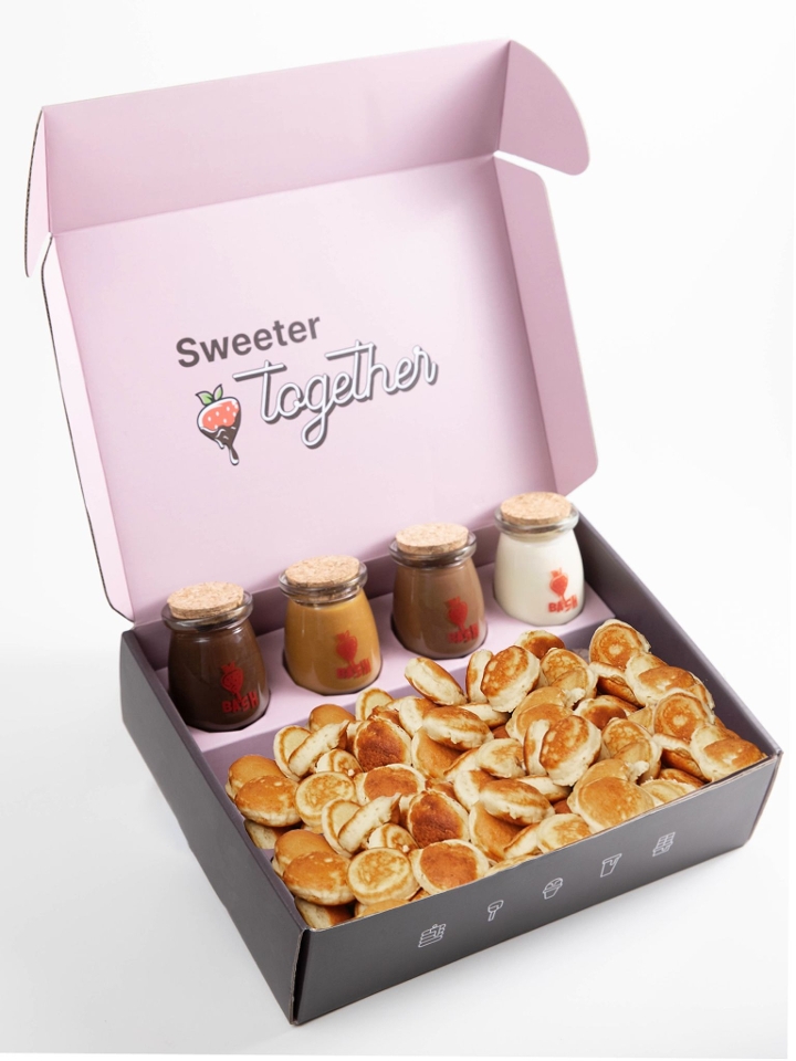 Mini Pancakes (80 pcs) with 4 dipping sauce options.
