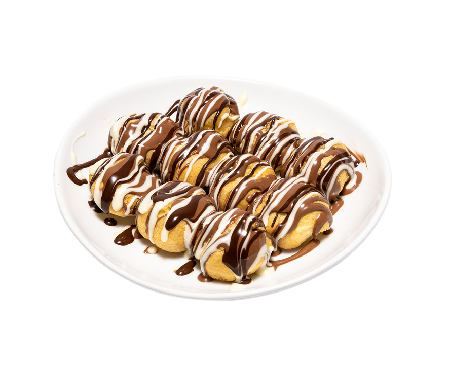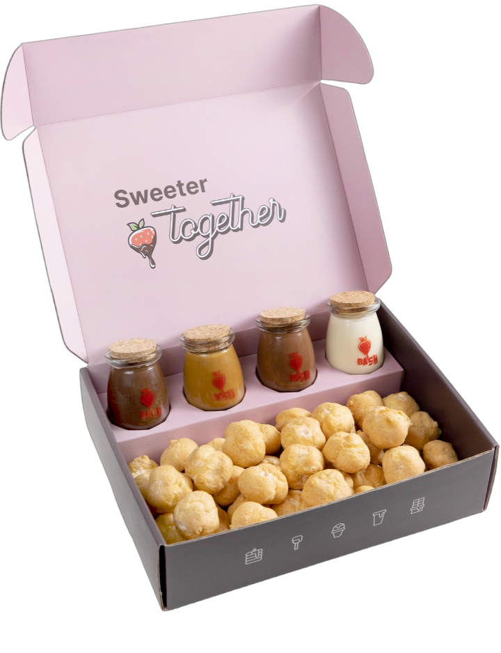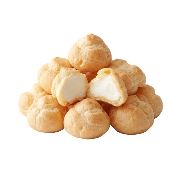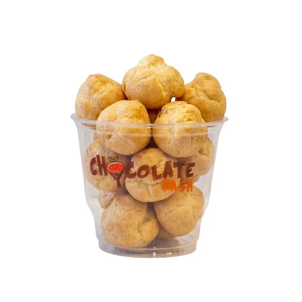 Delicious Belgian Mini Cream Puffs filled with fresh vanilla-flavored whipped cream, with 4 dipping sauces. (40 pcs)
