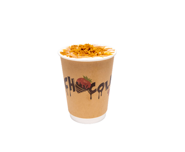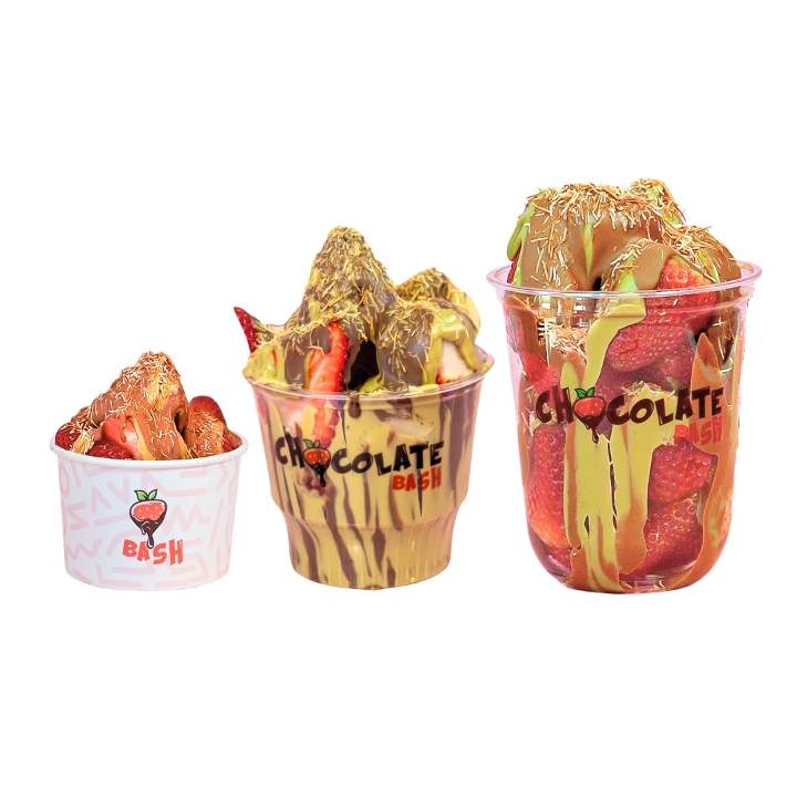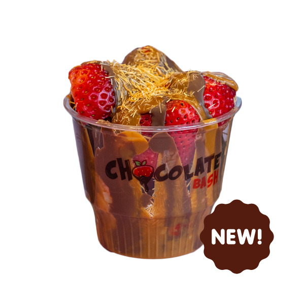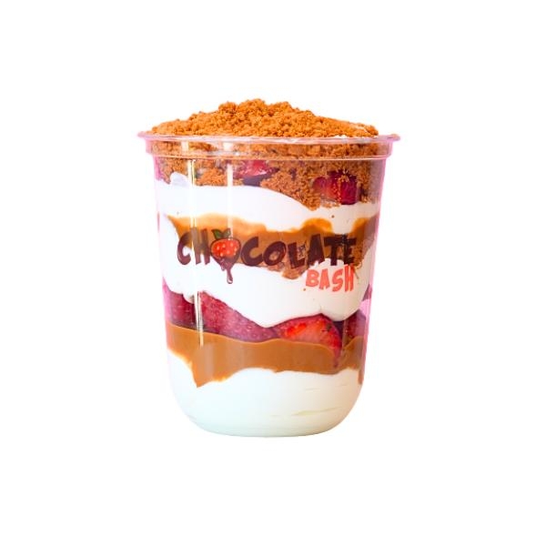 Indulge yourself with the Popular Strawberry Cup made with fresh strawberries, Crispy Knafeh, Belgian Milk Chocolate, and delicious Cookie Butter.