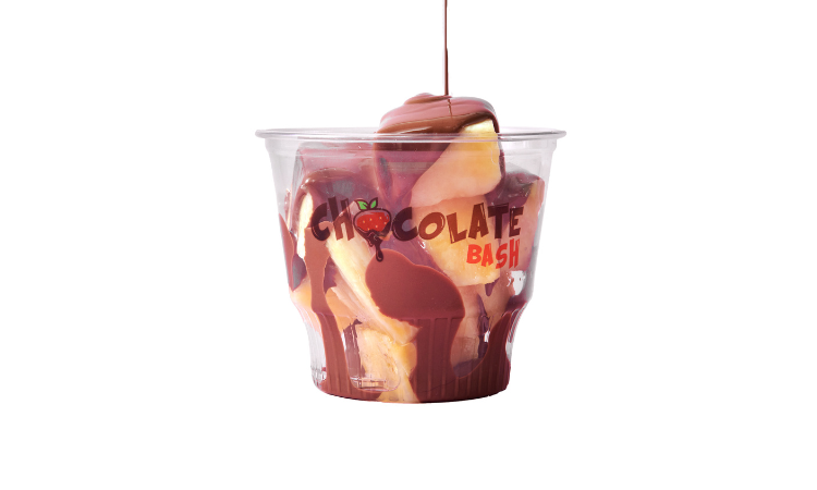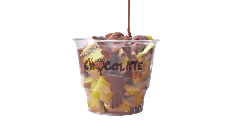 Delight in our Pineapple Cup – juicy pineapple chunks topped with smooth, warm Belgian chocolate.
