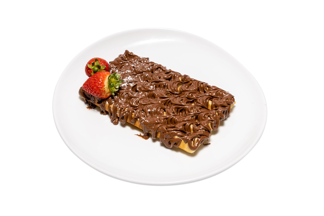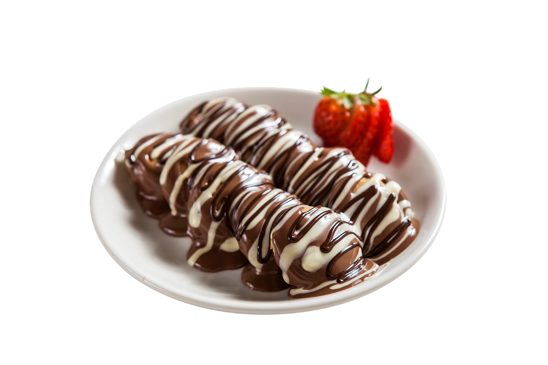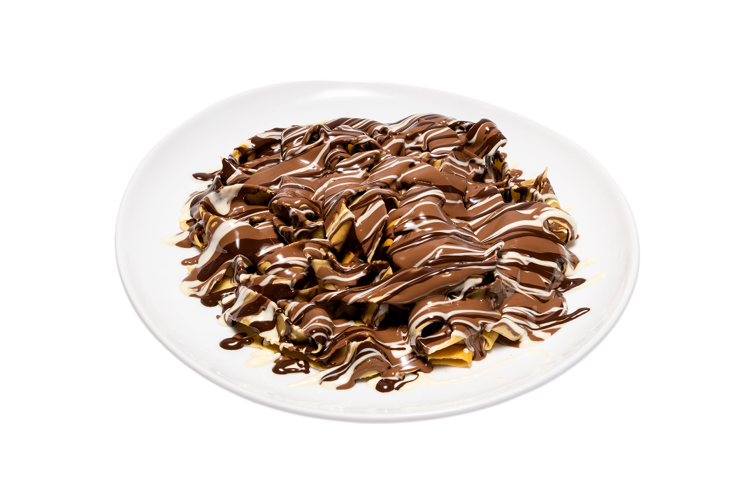 2 crepes cut into thin slices topped with your choice of Belgium chocolate