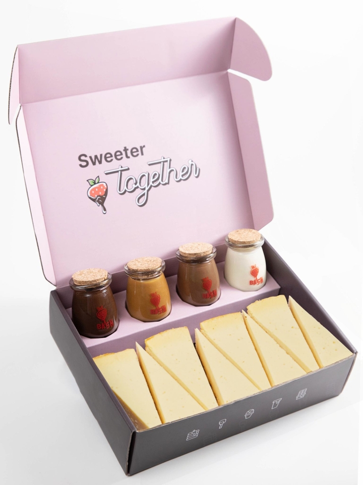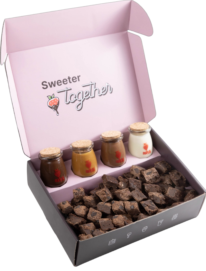 Chocolate brownies (55 pcs) with 4 dipping sauce options.