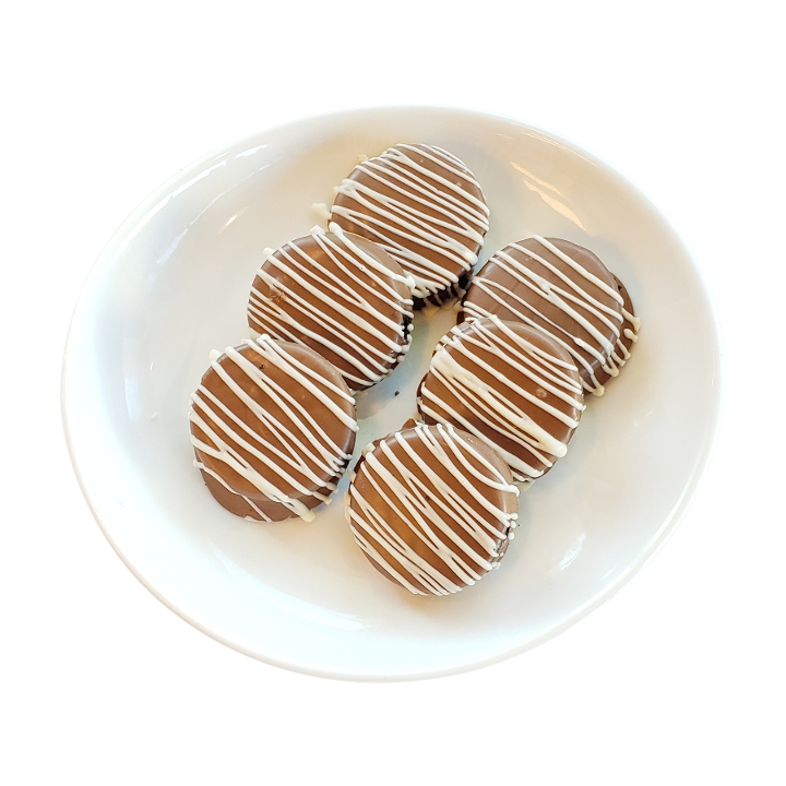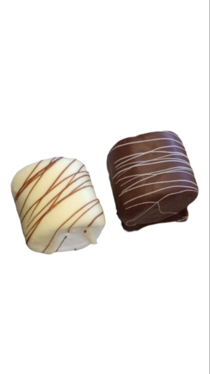 Jumbo Marshmallow dipped in your choice of Belgian Chocolate with a drizzle of White Belgian Chocolate.