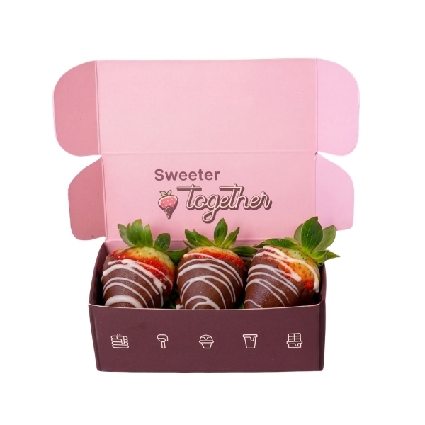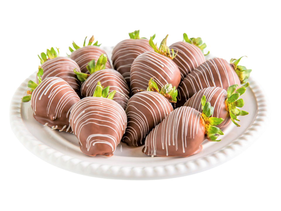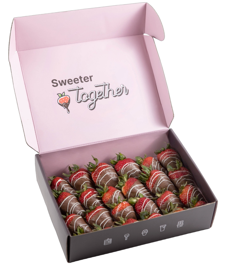 24 Strawberries covered in Belgian Milk Chocolate with White Chocolate drizzle.