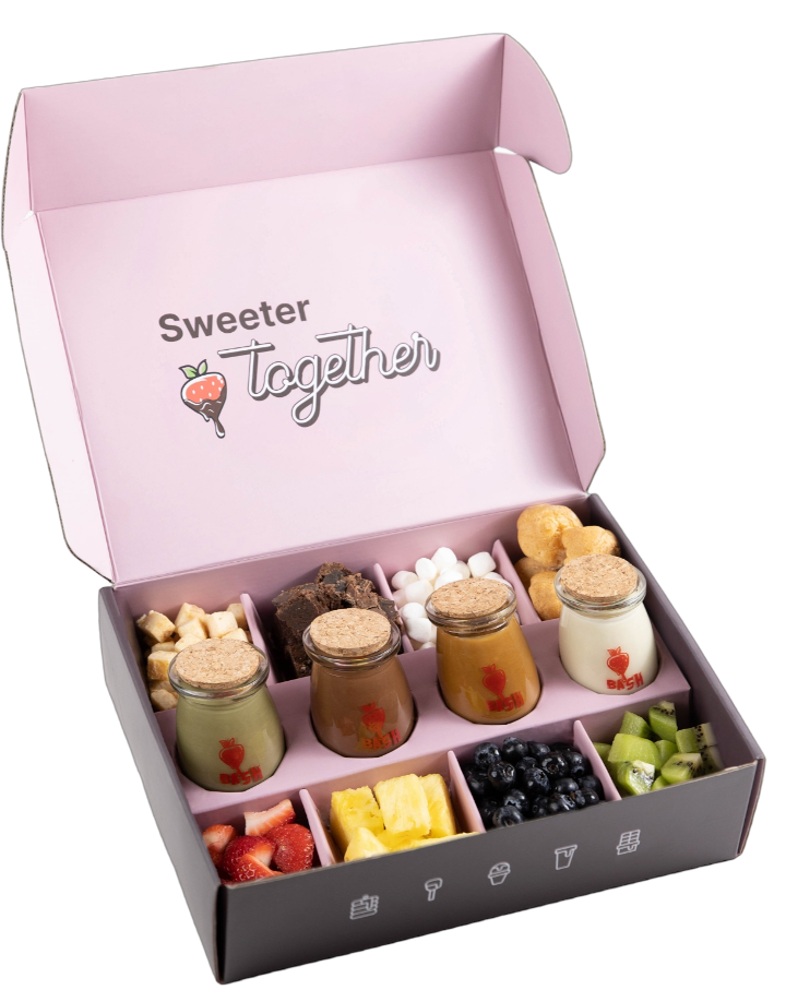 Savor our Kiwi Cup – a refreshing dessert featuring juicy kiwi slices topped with warm, silky Belgian chocolate.