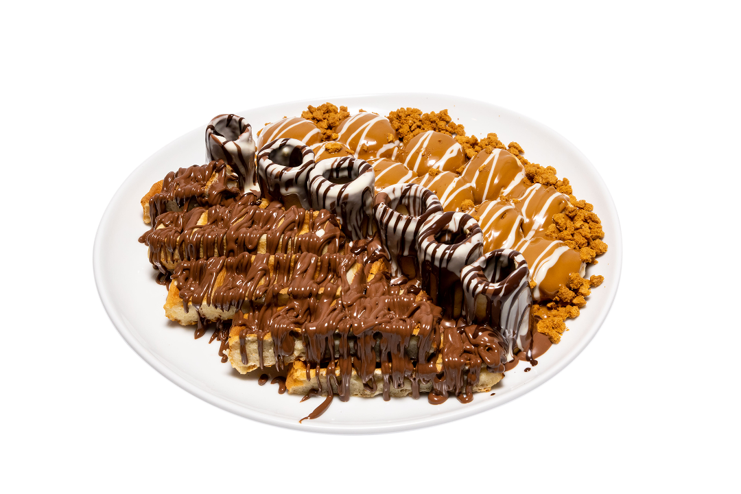 get a taste of our menu on one plate (crepe, waffle and mini pancakes served with your choice of topping)