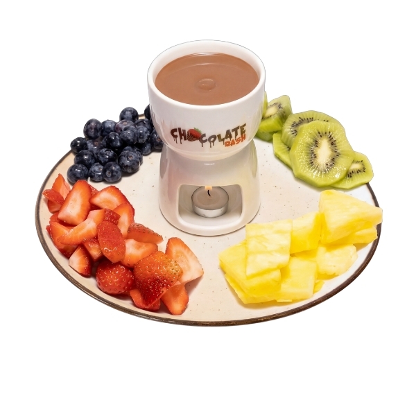 A colorful assortment of fresh seasonal fruits served with a warm, velvety chocolate dipping cup. ( Includes Fondue Set )