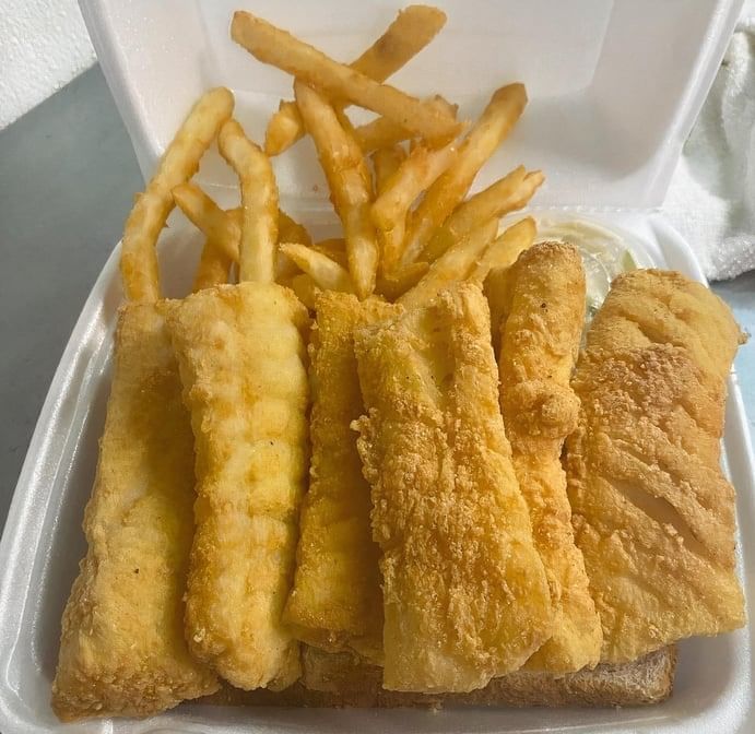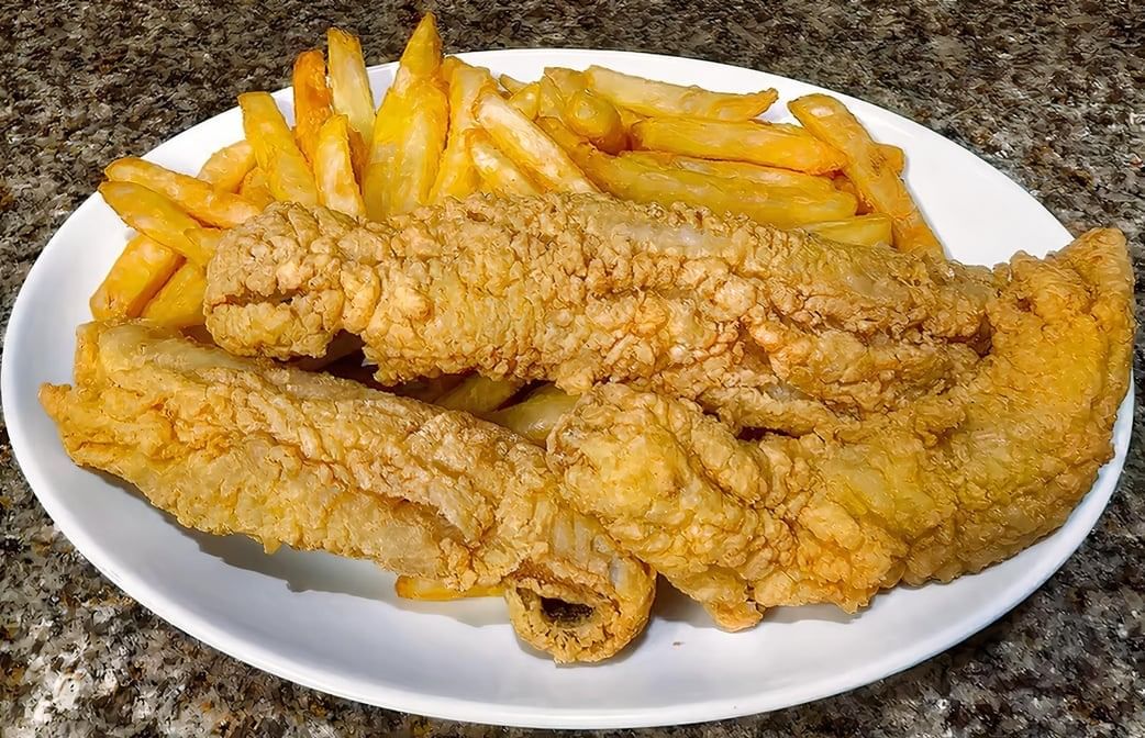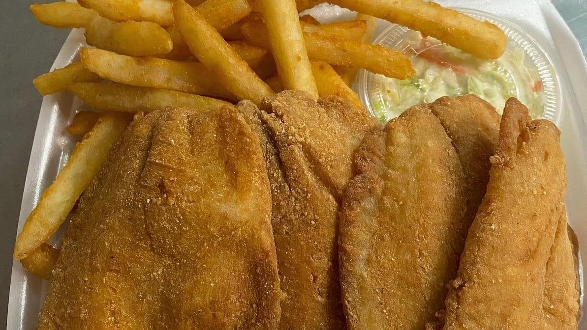 Tilapia fillet fried in our special cornmeal batter with our own special french fries