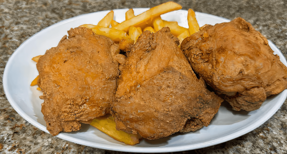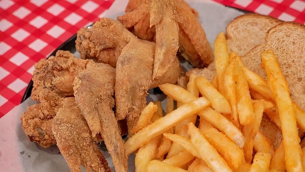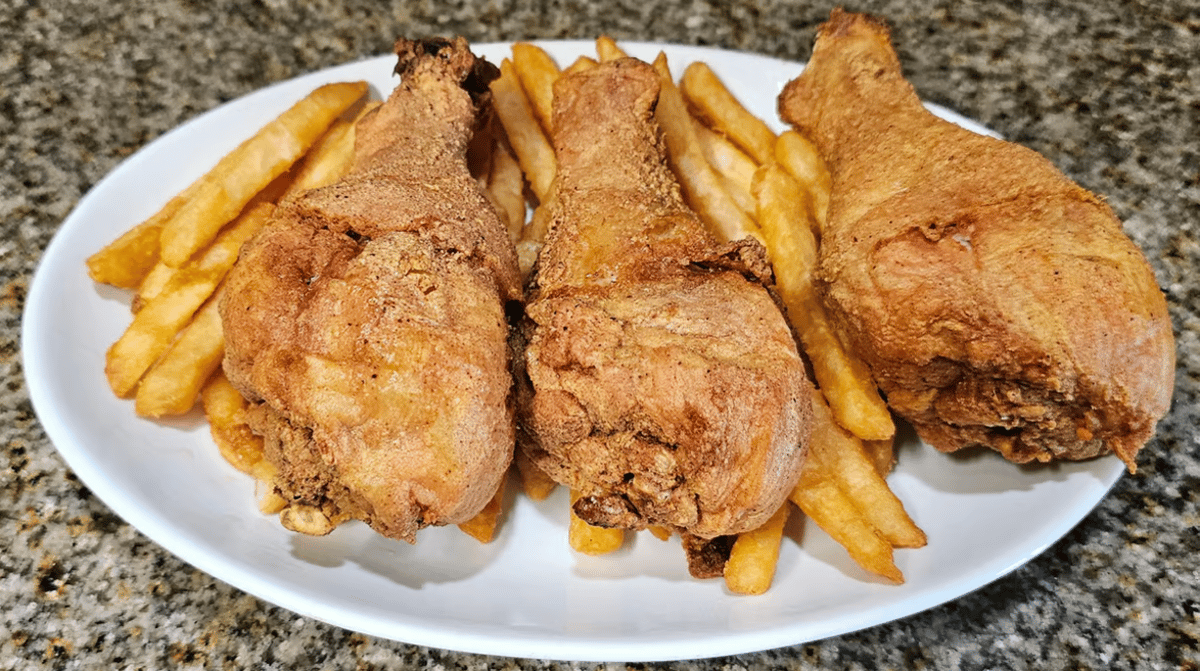 3 drum sticks. Fried with our special batter served with our own special french fries