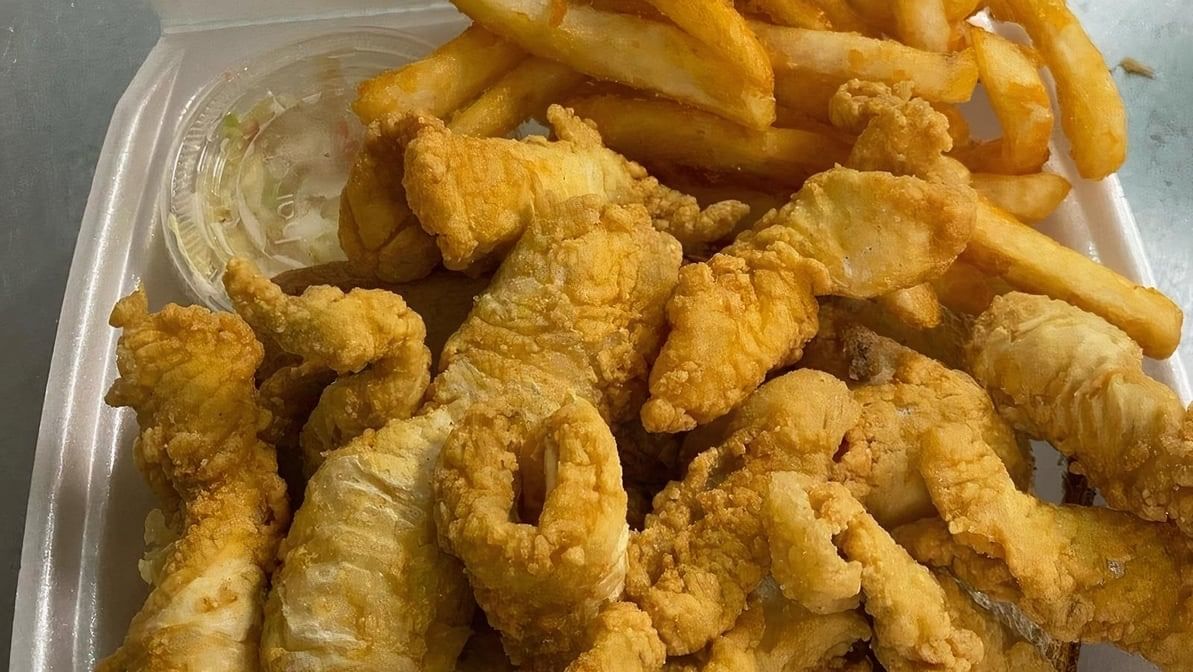 Catfish nuggets fried in our special cornmeal batter with our own special french fries