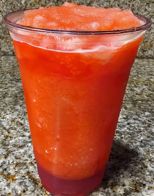 Mouth watering redbull and strawberry blended drink. Icey smooth