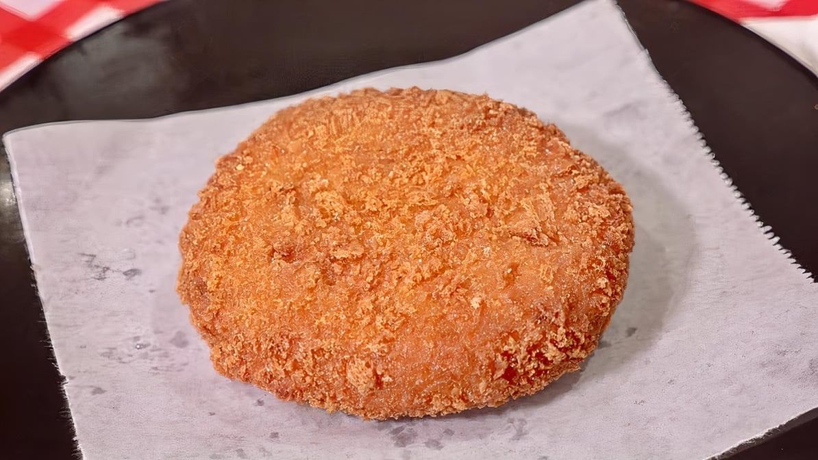 Crispy crab cake on a bun with lettuce and tomato with our special sauce
