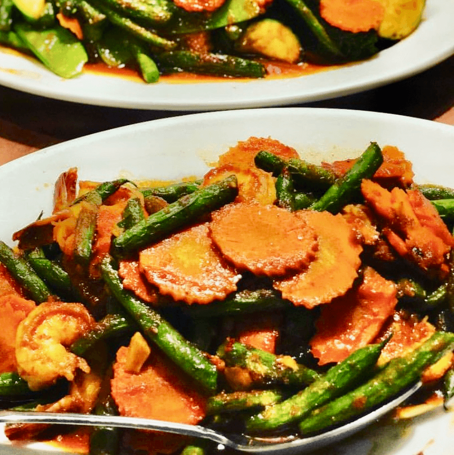 Spicy green beans and carrots sauteed in red curry. Jasmine Rice (GF) 'No Spice' option is not available on items with curry.