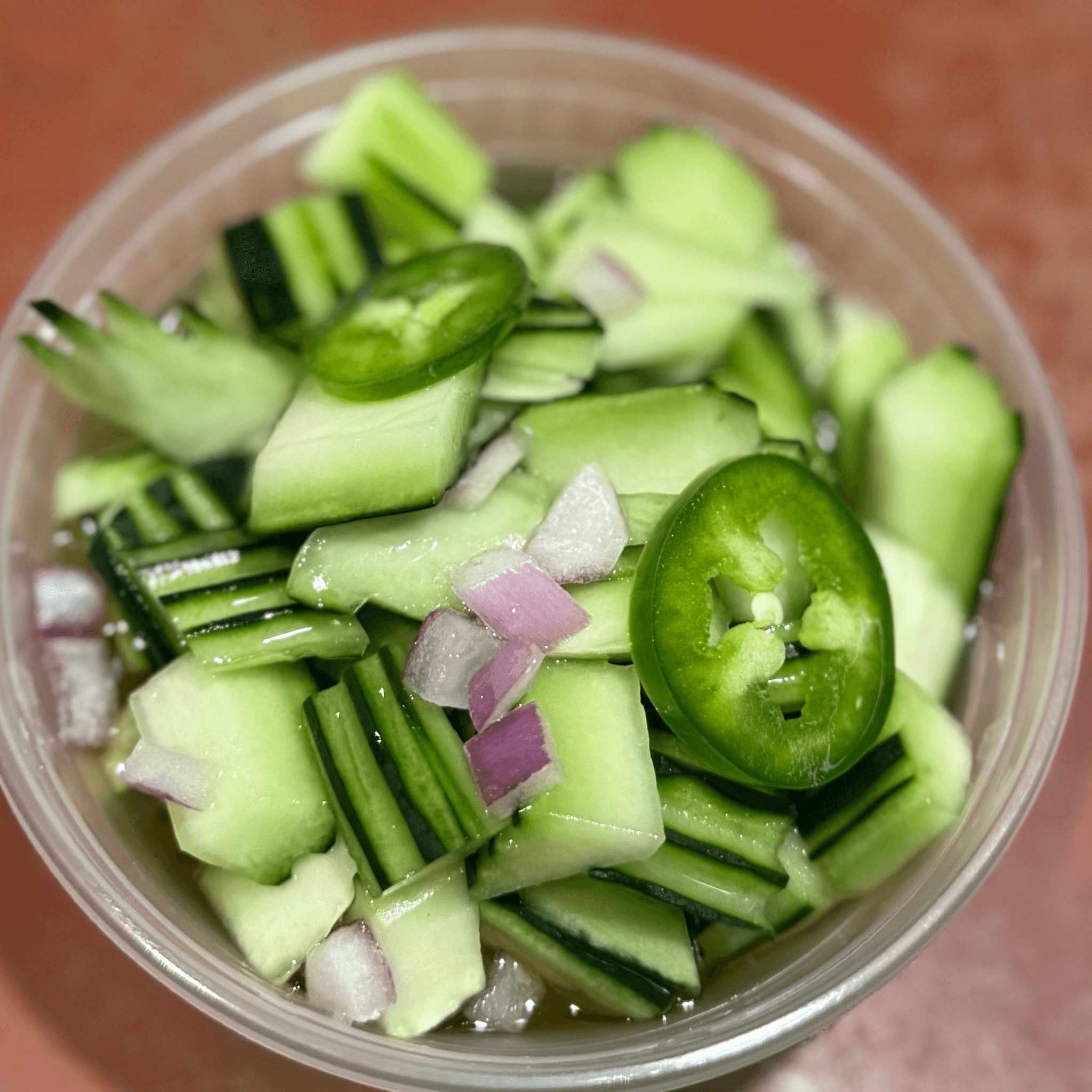 Thai spicy salad with grilled beef tossed with onions, fresh Thai herbs, cilantro, mint leaves in spicy tamarind dressing. Served over mixed lettuce, cucumber and tomatoes. (GF)