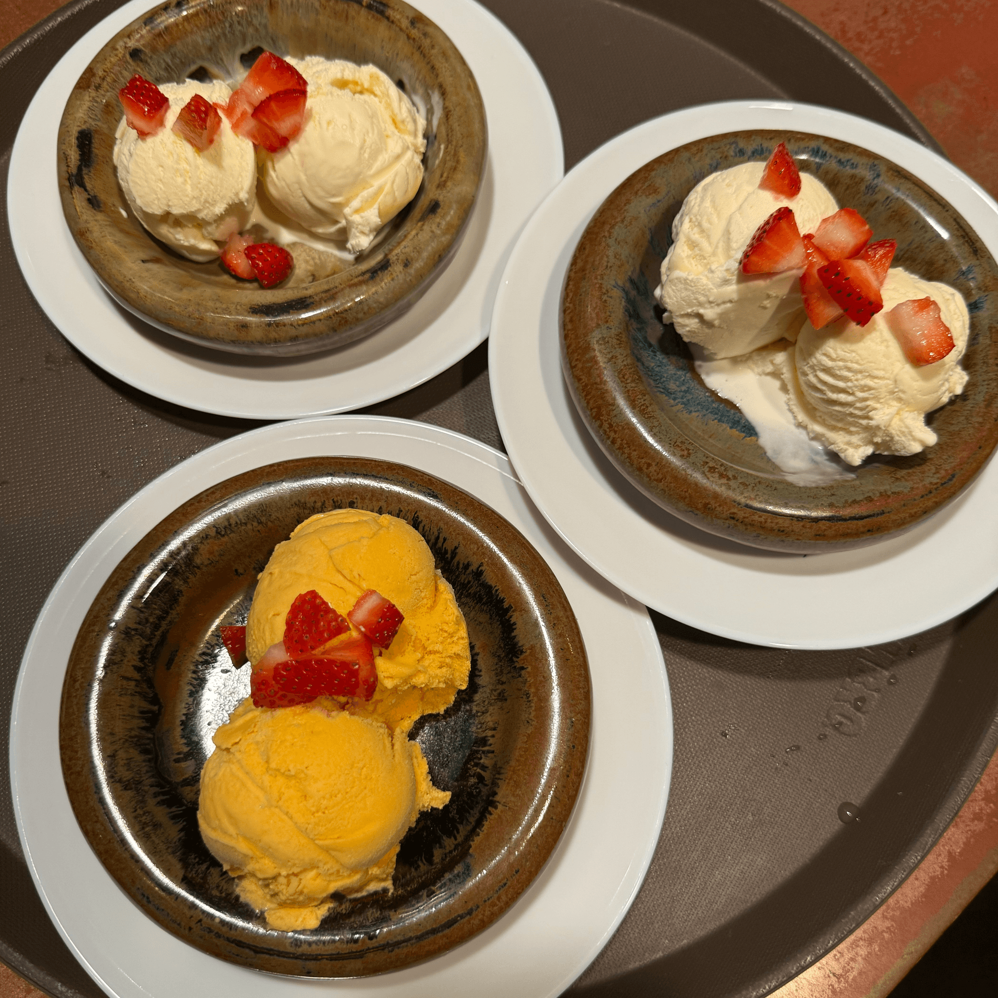 Grilled mango, banana, pineapple and roasted coconut. Topped with passionfruit syrup and ice cream.