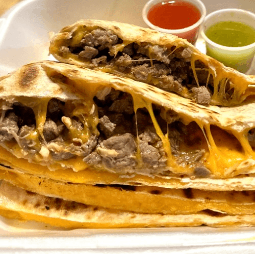 Grilled Carnitas stuffed with a generous portion of cheese all wrapped in a Crunchy flour tortilla.