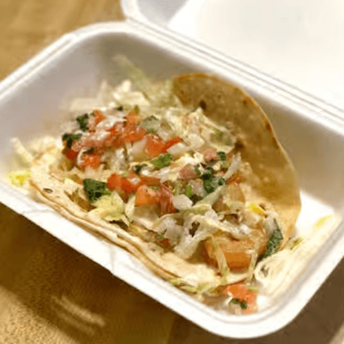 Fried pollock, topped with fresh Mexican salsa, crisp lettuce and sour cream all served on top of a warm corn tortilla