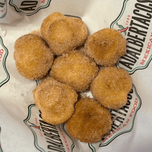Mini cream puffs filled with delicious frozen custard cream and lightly covered in our in house made cinnamon churro mix