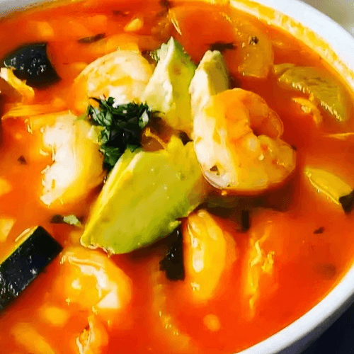 Six large tiger shrimp, Spanish rice, carrots, zucchini, mushrooms and pico de gallo. Served in a traditional tomato broth with fresh tortillas