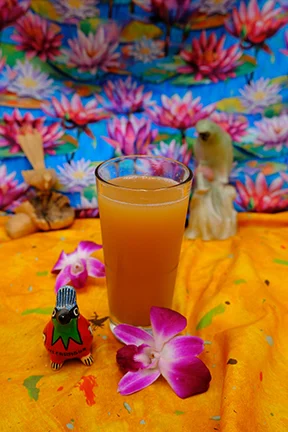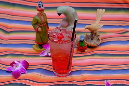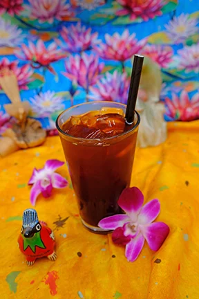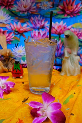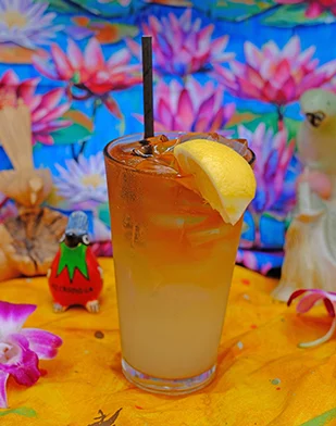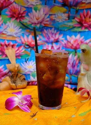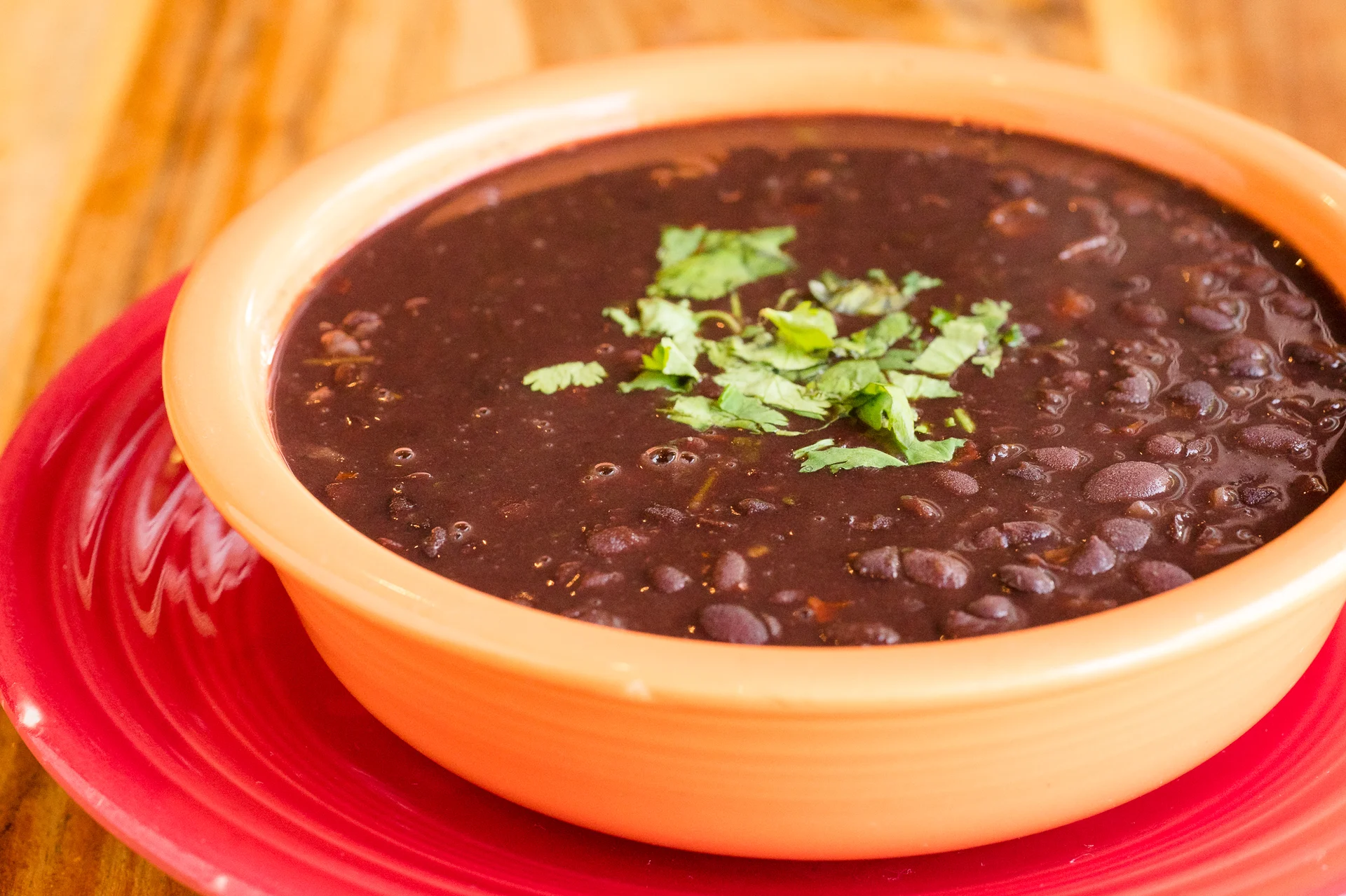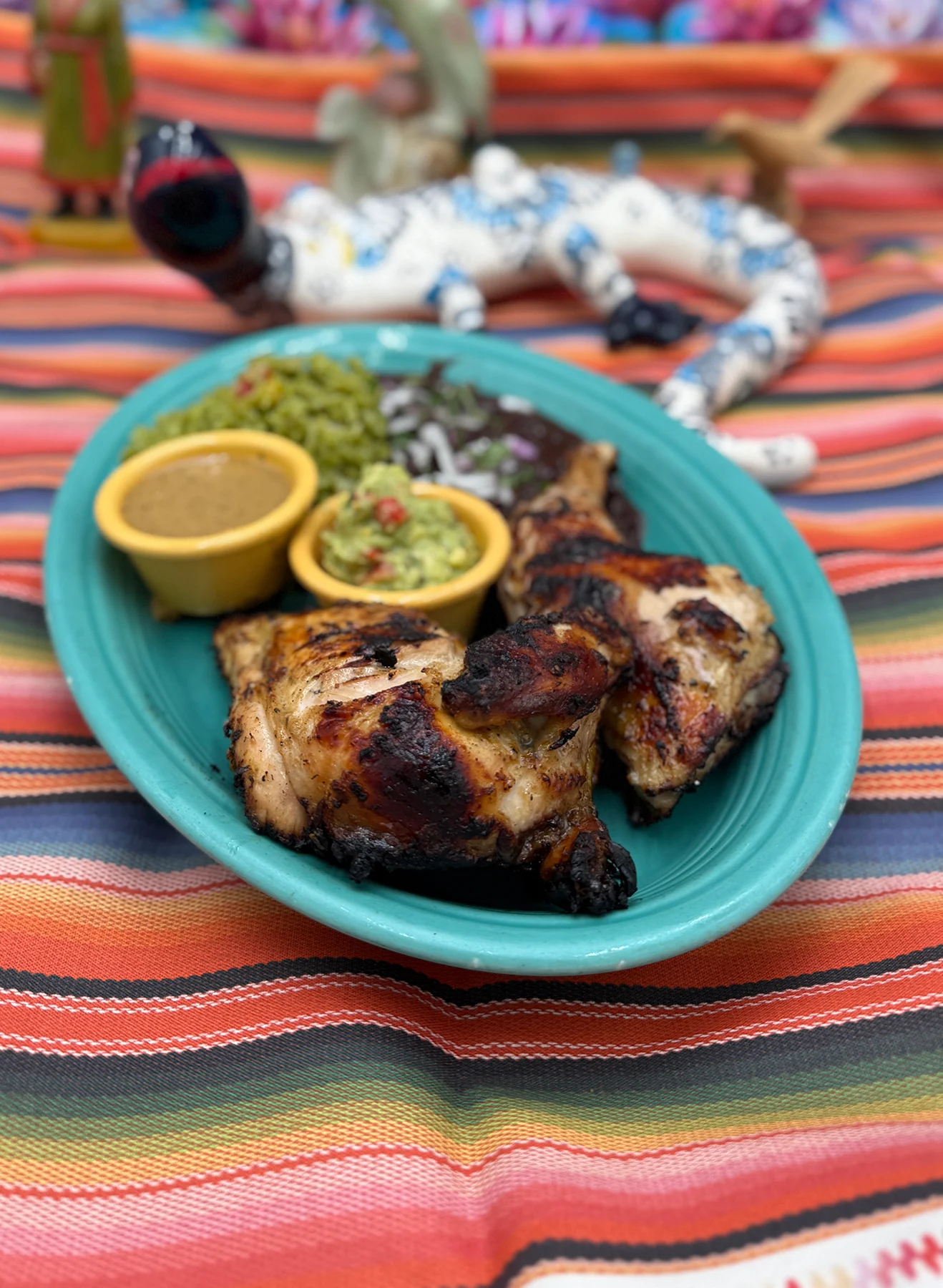 A baked half chicken marinated in 18 spices, chilies and citrus juice served with cilantro rice, black beans with a jalapeno-cilantro-onion garnish, Polynesian guacamole and a side of jerk sauce
