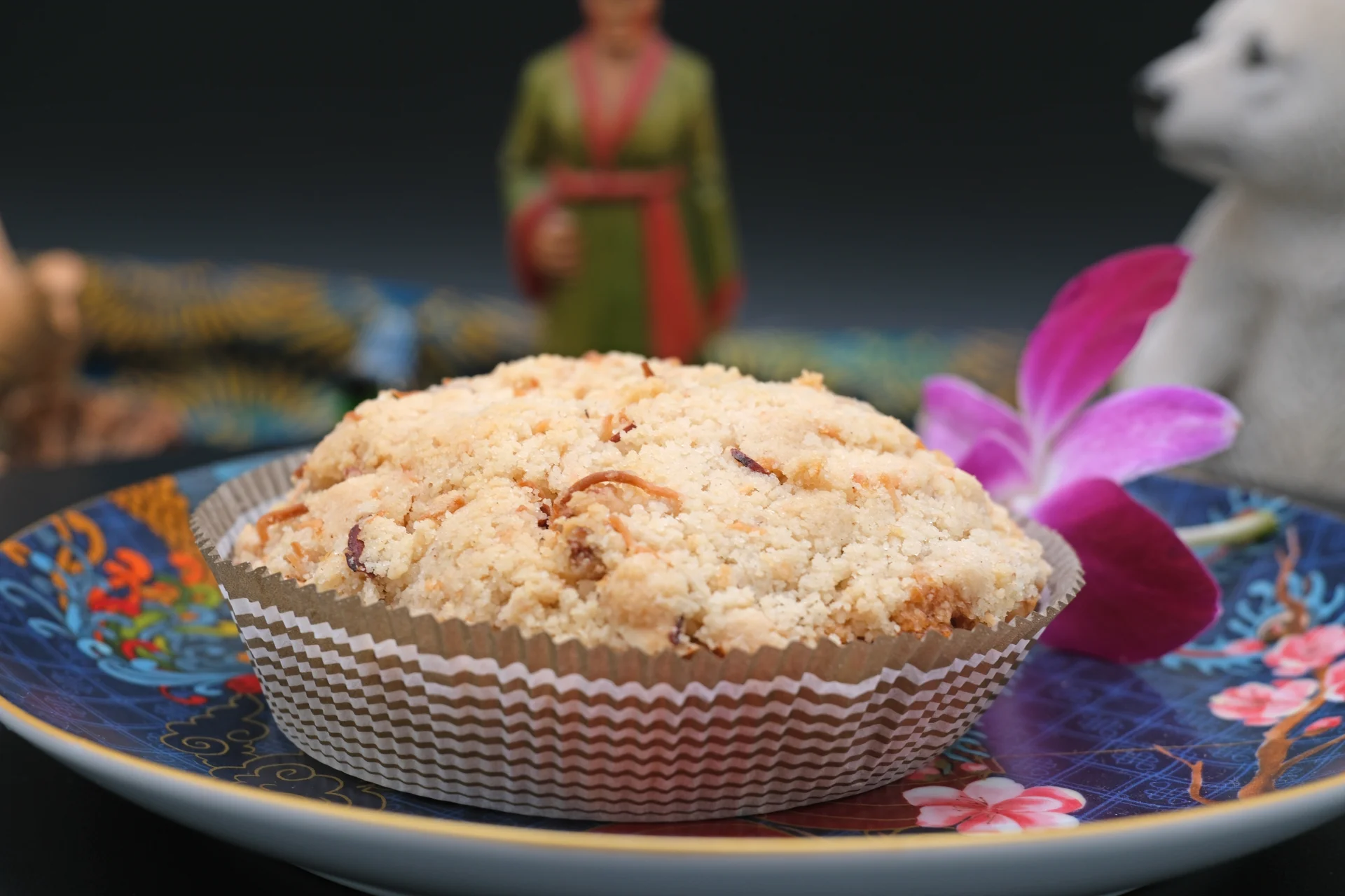Fuji apples crowned with a pecan-brown sugar crumble nested in a flaky crust(Vegan)(Contains nuts)