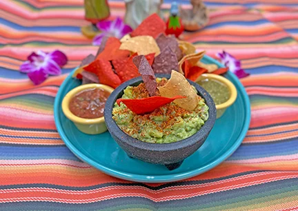 Avocado mango guacamole with onion, cilantro, roasted peppers, fish sauce. Served with a crispy corn tortilla and chips