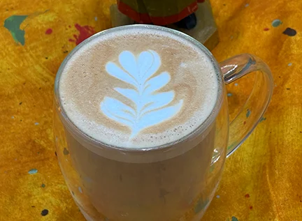 Double shot espresso with hazelnut syrup, Ghirardelli white chocolate, and steamed milk