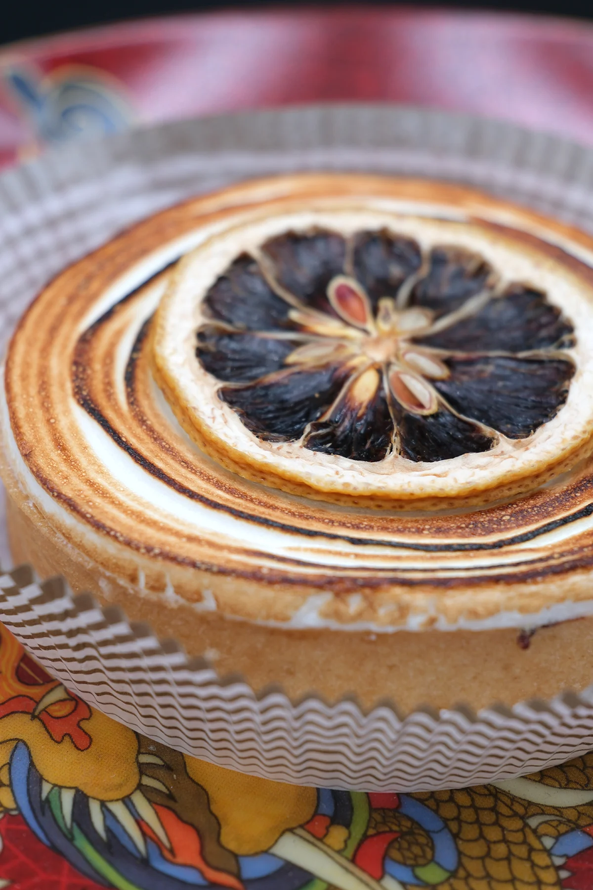 Lemon curd and whipped meringue. Fresh lemon juice is used to make this tart a favorite