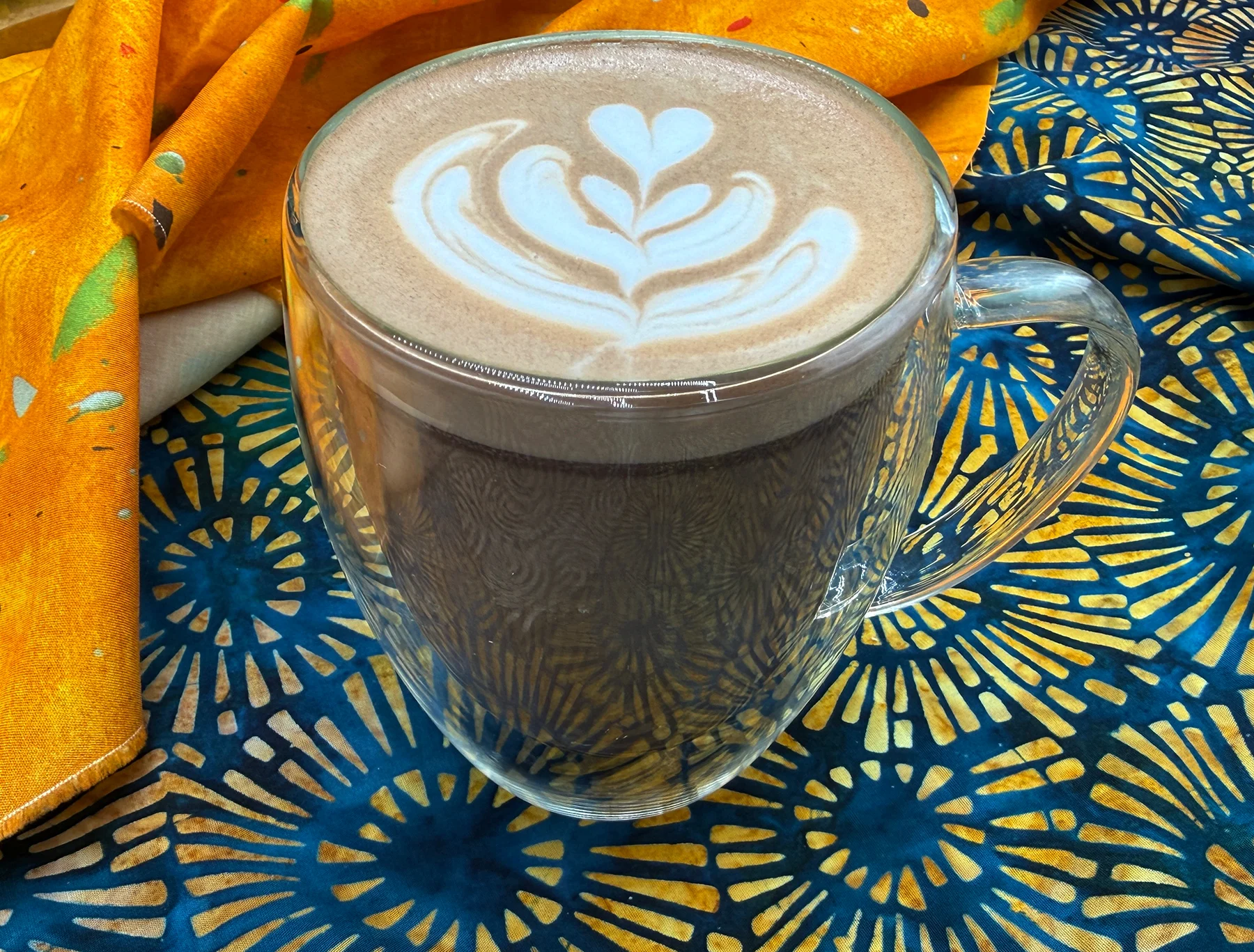 Double shot espresso with Ghirardelli white chocolate and steamed milk