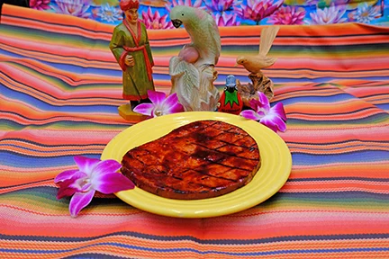 Ham steak glazed with our Borracho bourbon bbq sauce